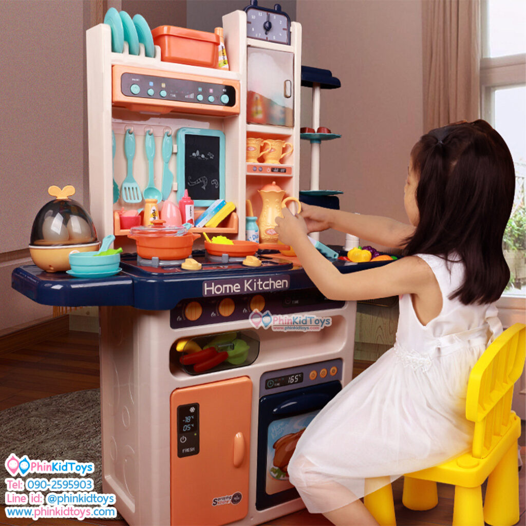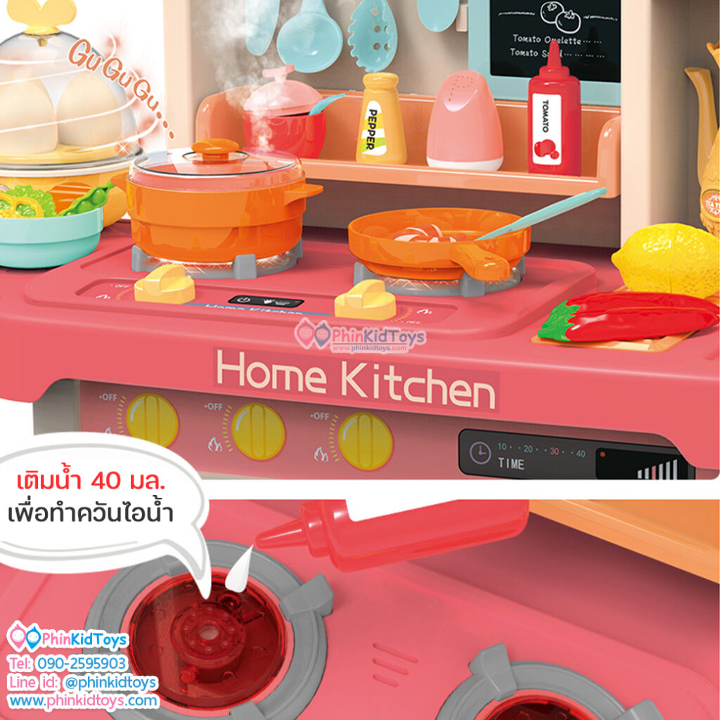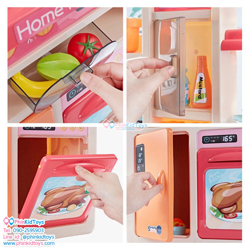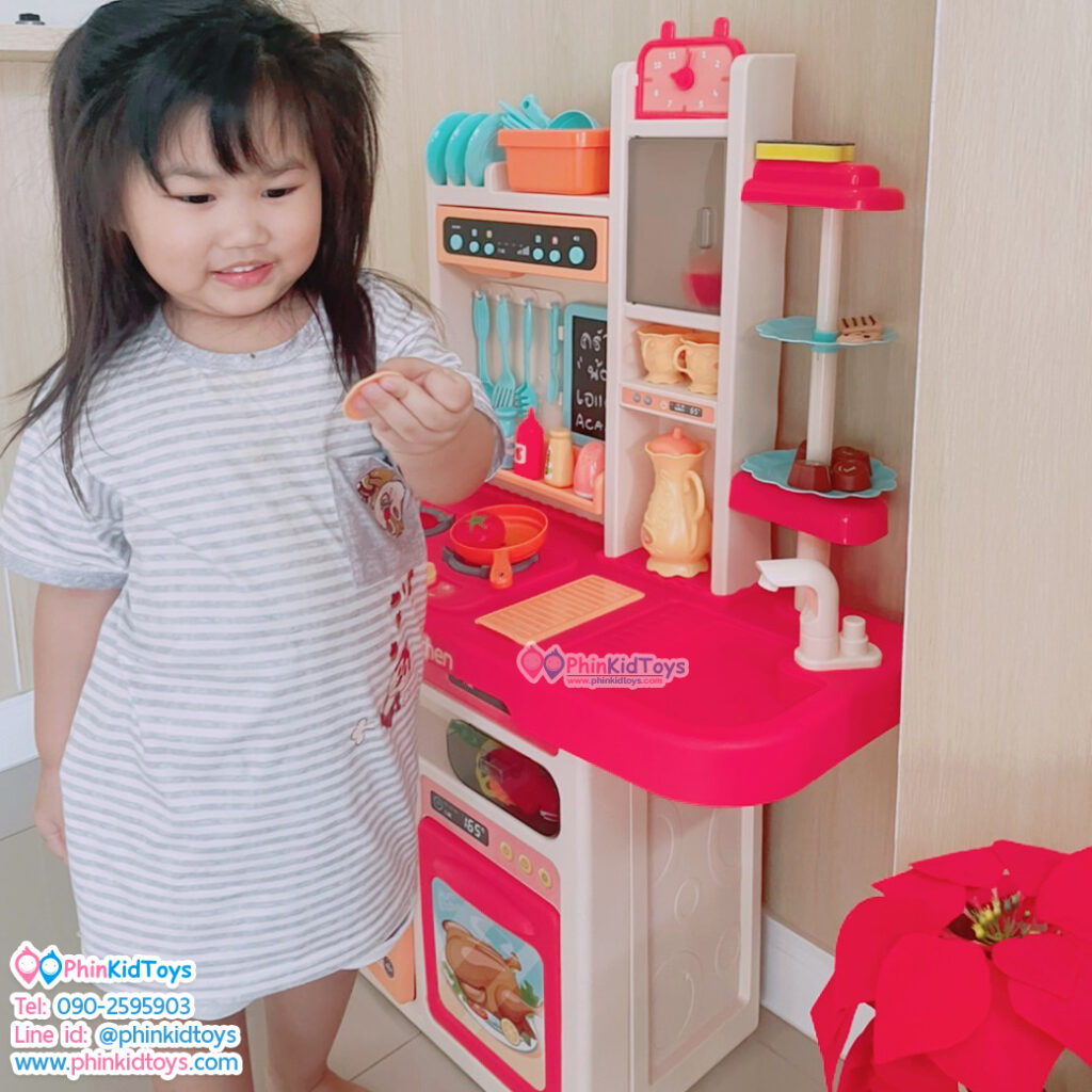 ชุดครัวจำลองเด็กชุดใหญ่ 65 ชิ้น มีเสียง มีไฟ มีน้ำไหล มีควัน สีเหลืองชมพู