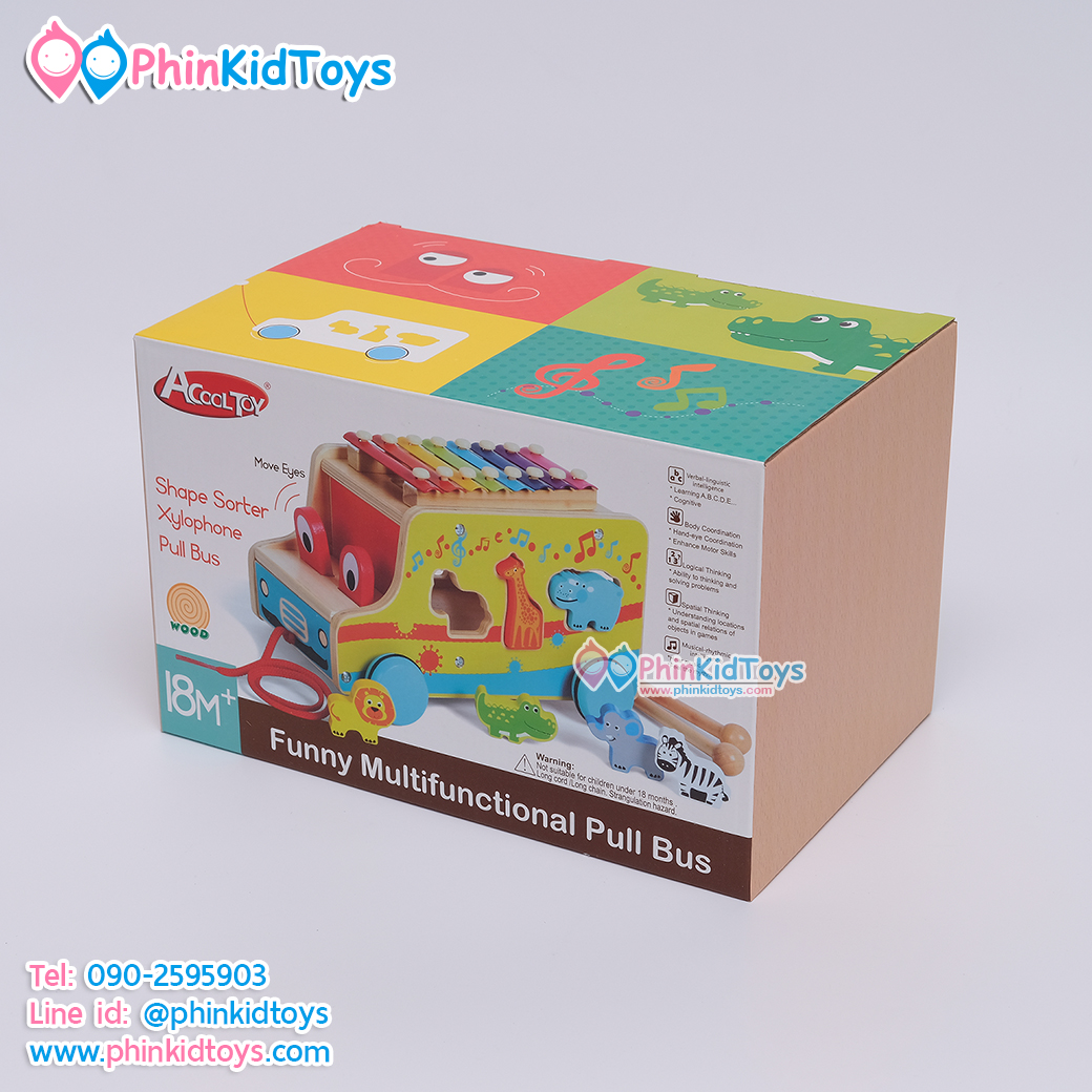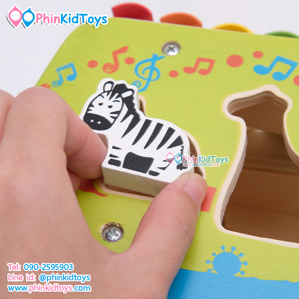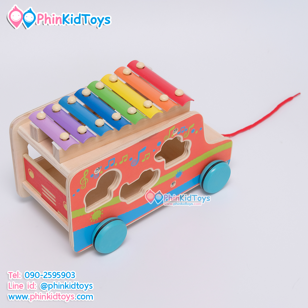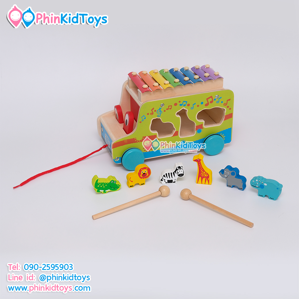 รถบัสลากบล็อคหยอดไม้รูปสัตว์พร้อมระนาด