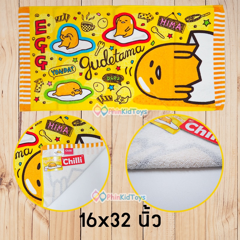 ผ้าขนหนู ลายลิขสิทธิ์แท้ ลายไข่ขี้เกียจ gudetama ขนาด 16×32 นิ้ว ลาย 01