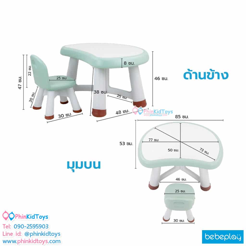 Bebeplay โต๊ะเขียนหนังสือ+เก้าอี้ รุ่น Classic – Curve สีเขียว วัสดุ HDPE Food Grade โต๊ะทำการบ้าน โต๊ะอ่านหนังสือ โต๊ะเด็ก