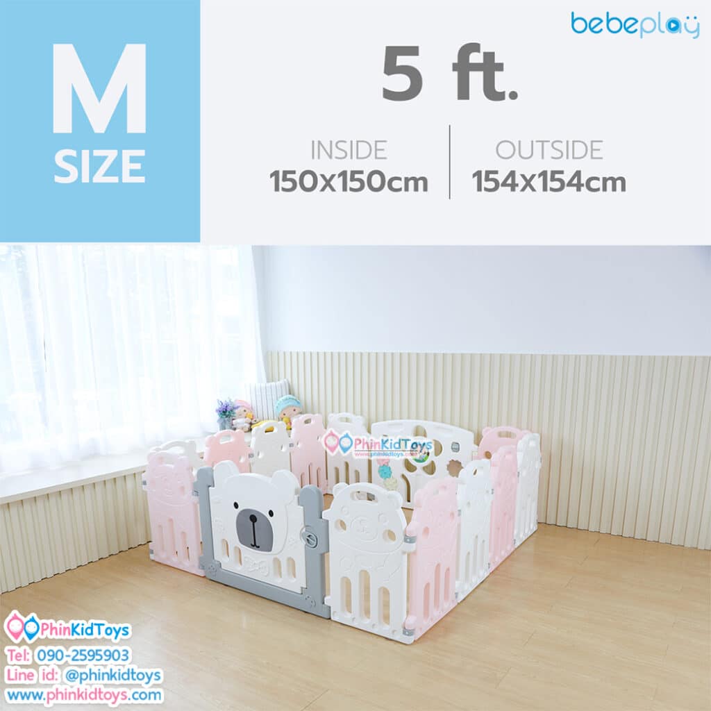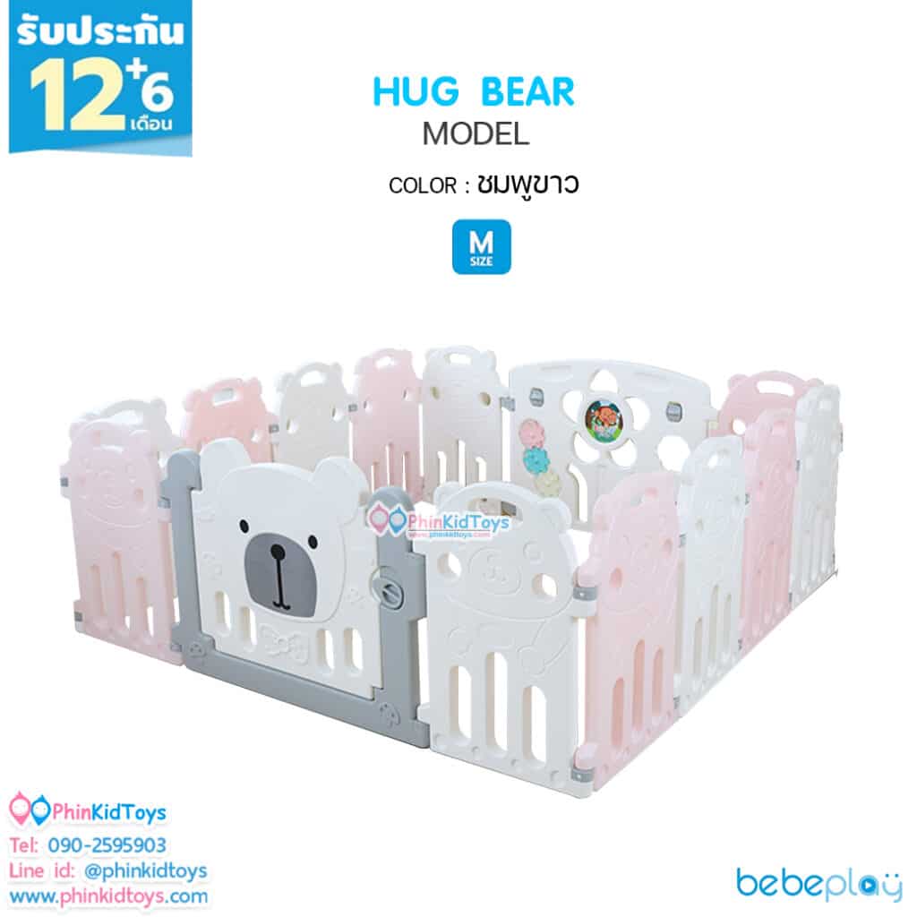 Bebeplay คอกกั้นเด็กเกาหลี รุ่น Hug Bear สีชมพูขาว Size M / 5 ฟุต คอกกั้น คอกเด็ก รั้วเด็ก