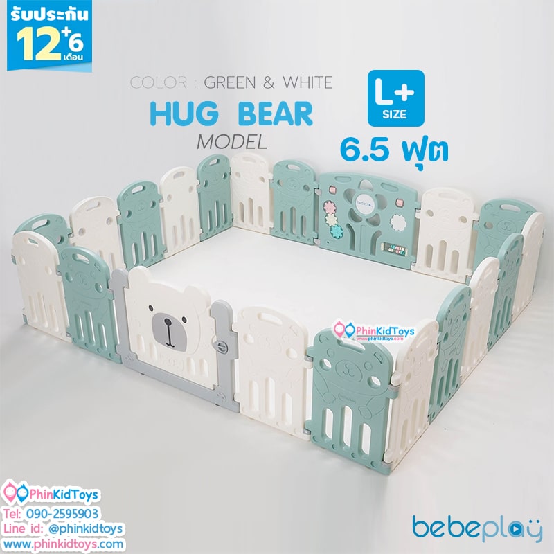 Bebeplay คอกกั้นเด็ก รุ่น Hug Bear Size L+ / 6.5ฟุต คอกกั้น คอกเด็ก รั้วเด็ก สีเขียวขาว