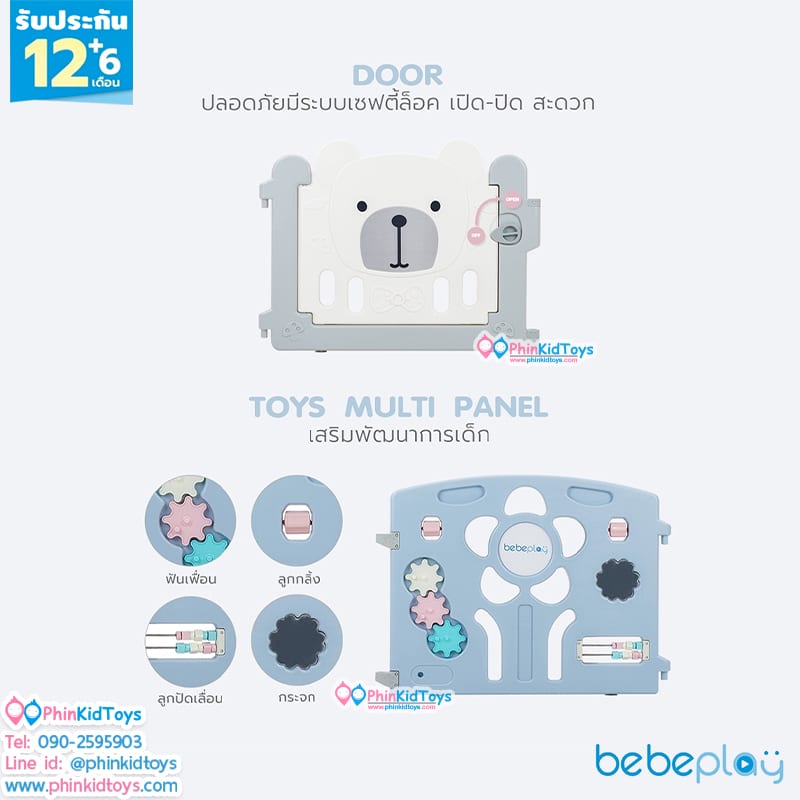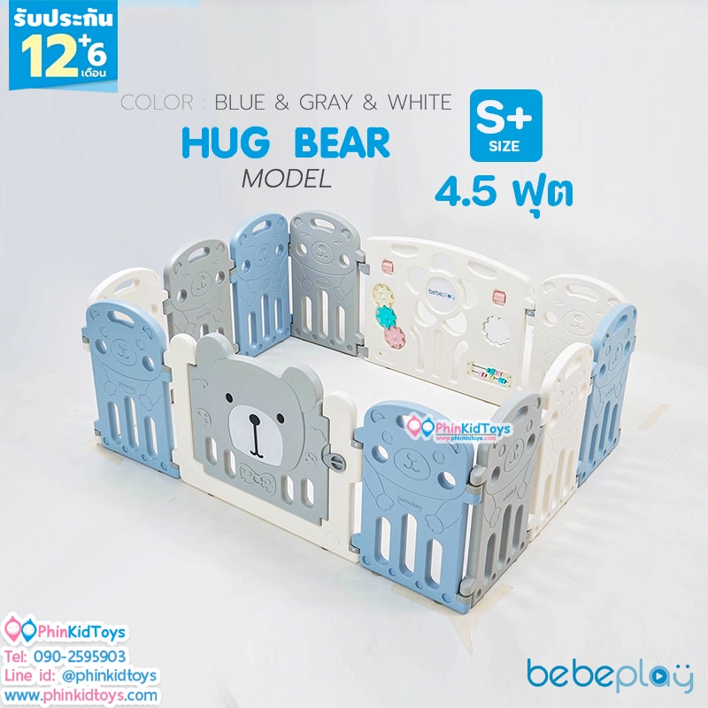 Bebeplay คอกกั้นเด็ก รุ่น Hug Bear Size S+ / 4.5 ฟุต คอกกั้น คอกเด็ก รั้วเด็ก สีฟ้าเทาขาว