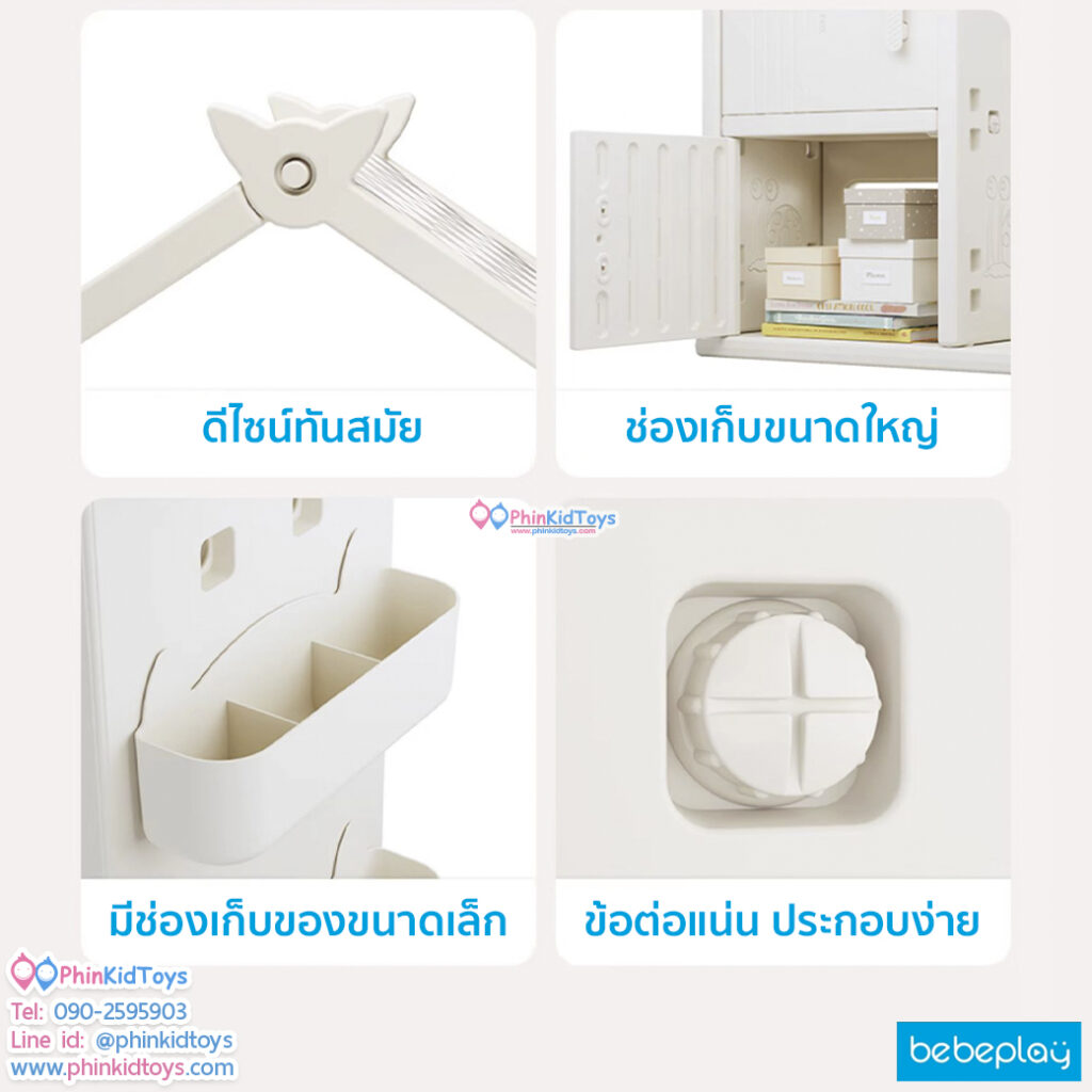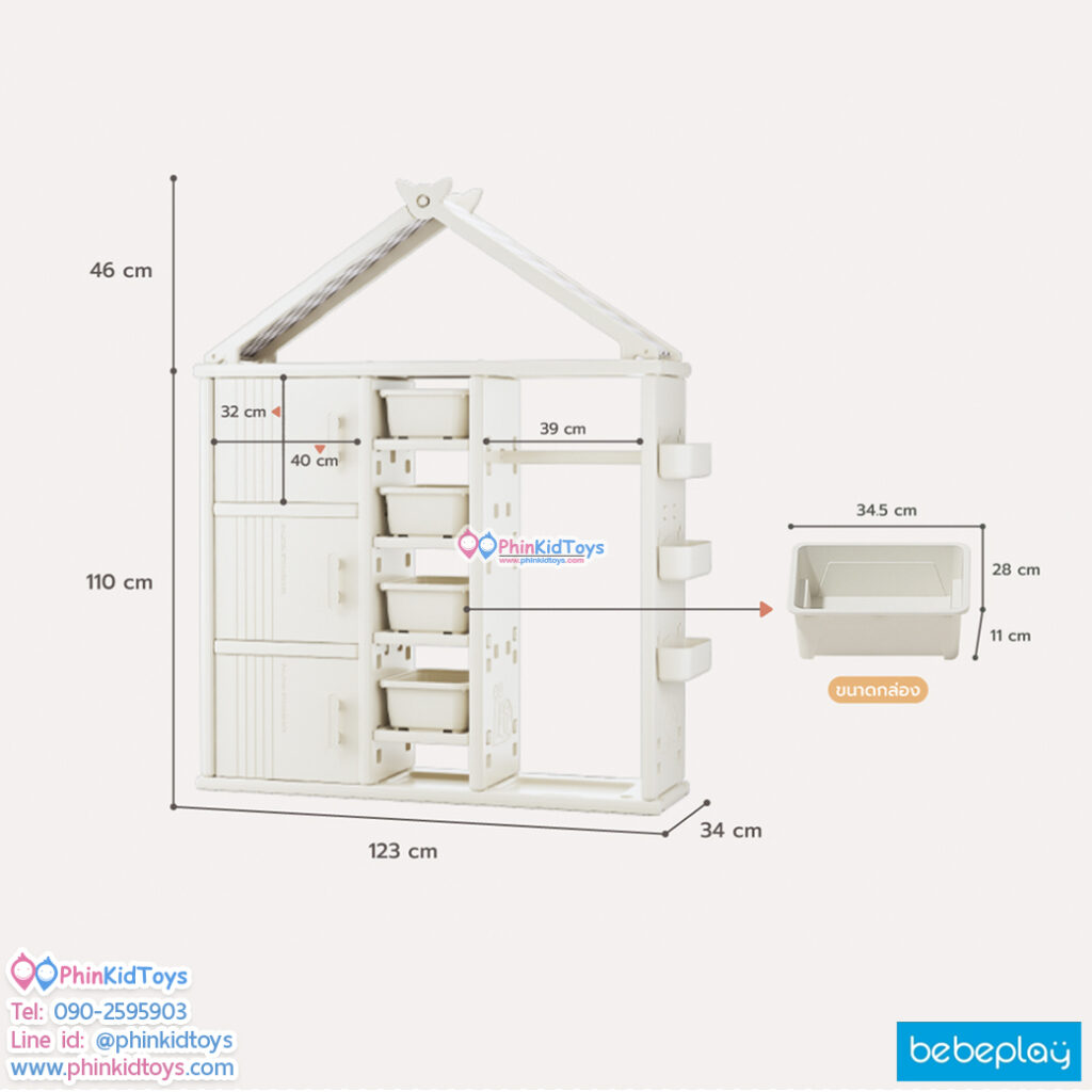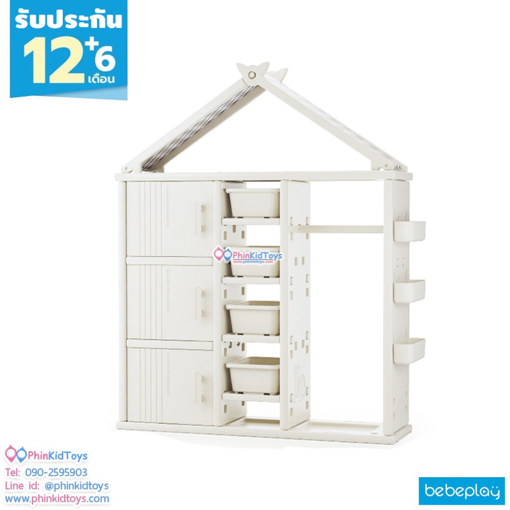 Bebeplay ตู้เก็บของ ชั้นแขวนเสื้อ ทรงบ้าน รุ่น Tidy ชั้นเก็บของ ช่องเก็บขนาดใหญ่ มีฝาปิด