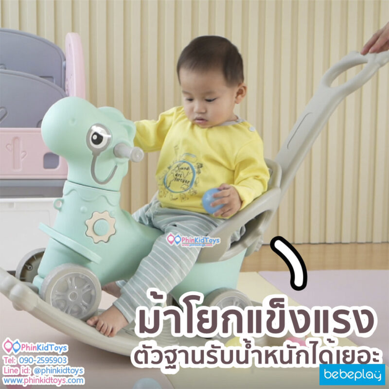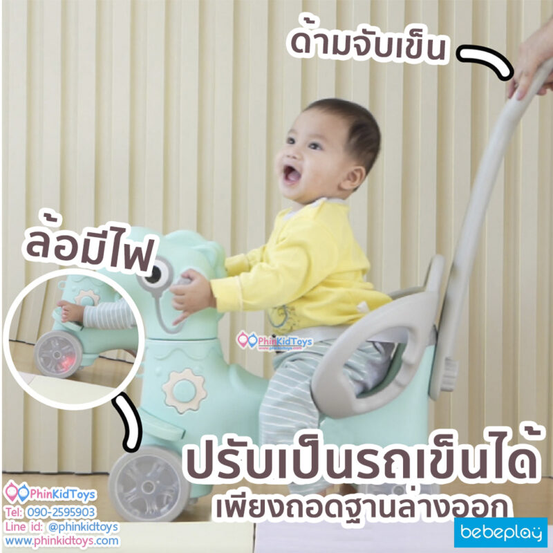 Bebeplay ม้าโยกกิจกรรม 3in1 รุ่น Baby Horse สีฟ้า ล้อมีไฟ ปรับเป็นรถเข็นได้ ม้าโยกเยก ม้าขาไถ