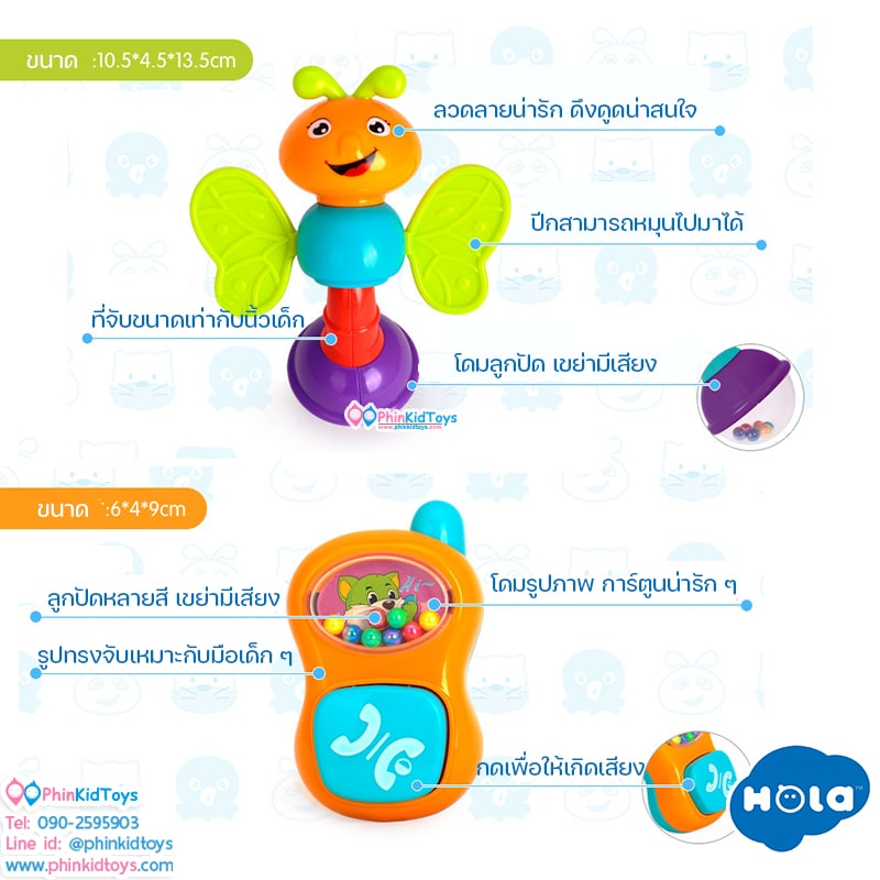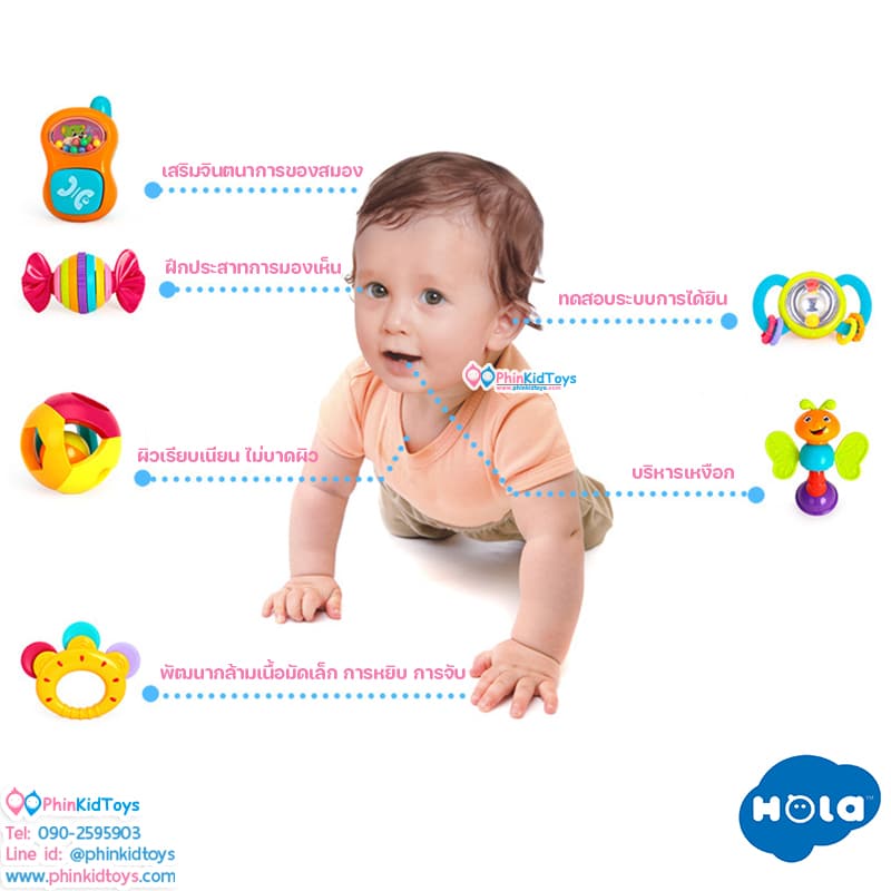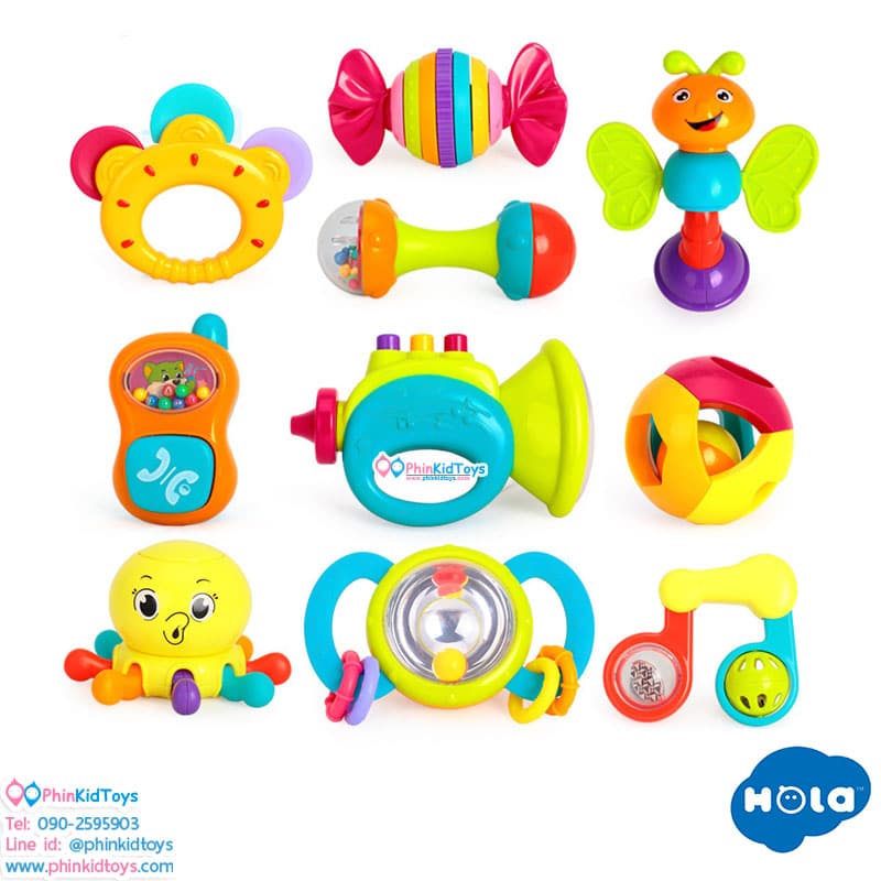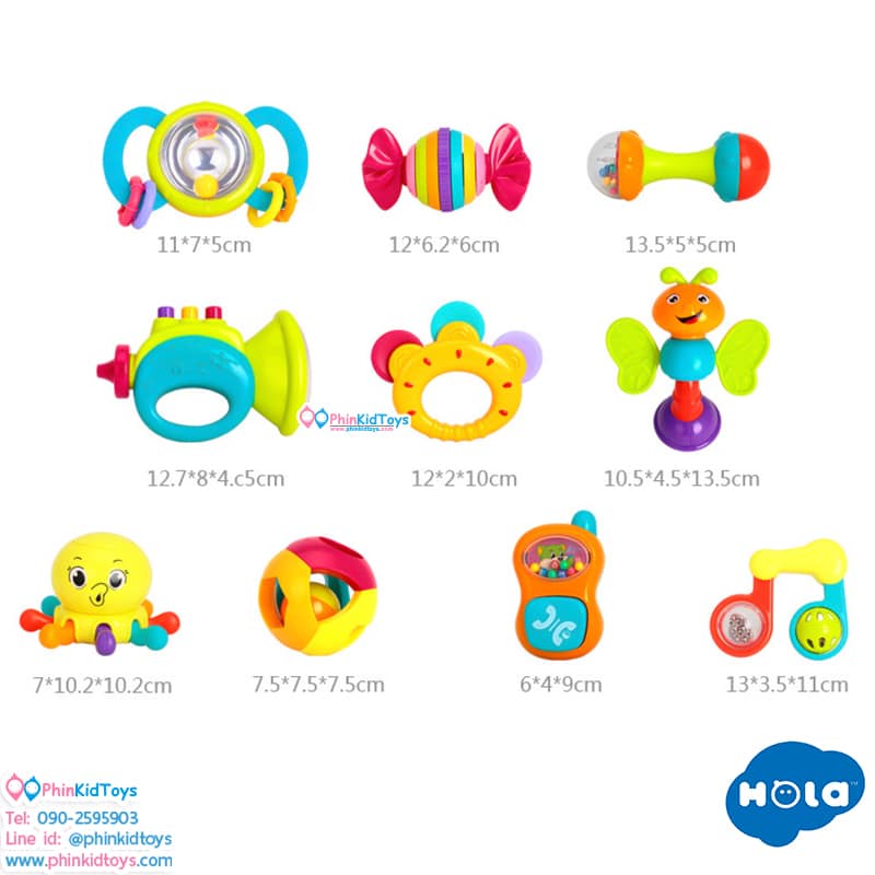 ของเล่นเขย่าเสริมทักษะและพัฒนาการ 10 ชิ้น สำหรับเด็กอายุ 3 เดือนขึ้นไป แบรนด์ของเล่นชั้นนำ Hola toys