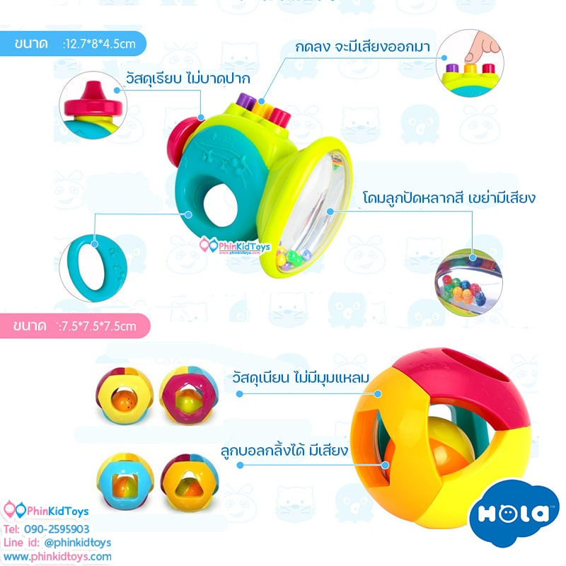 เมื่อน้องจับเล่นมีเสียงจะกระตุ้นให้เล่นอีก เป็นส่วนช่วยของการเจริญเติบโต ทำให้อารมณ์ดี ด้วยสีสันที่สดใส ชวนมอง