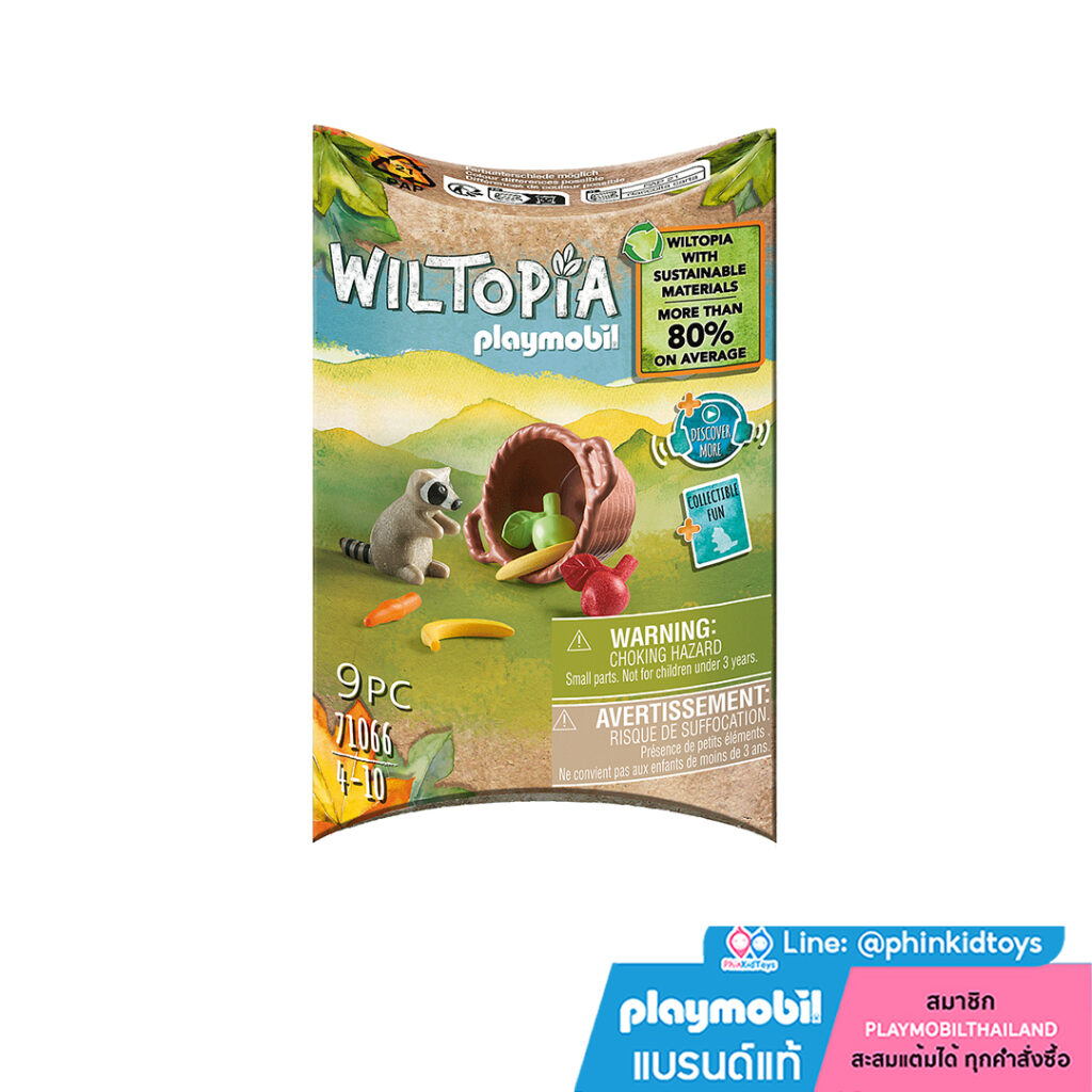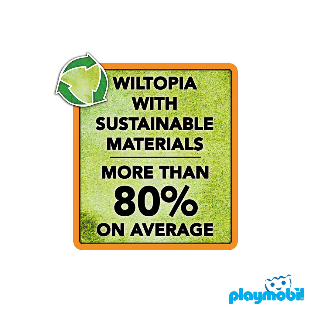 WILTOPIA เป็นผลิตภัณฑ์กลุ่มแรกที่เป็นมิตรกับสิ่งแวดล้อมจาก PLAYMOBIL ซึ่งประกอบด้วยวัสดุที่ยั่งยืนโดยเฉลี่ยกว่า 80% ชุดประกอบด้วยแรคคูน PLAYMOBIL รวมถึงอุปกรณ์เสริม การ์ดความรู้เกี่ยวกับสัตว์เพื่อรวบรวมและเนื้อหาเสียงที่น่าตื่นเต้น ด้วย WILTOPIA เด็ก ๆ สามารถค้นพบสัตว์และธรรมชาติในจักรวาลของตัวเองและดำดิ่งไปกับเกมสวมบทบาทในจินตนาการ
