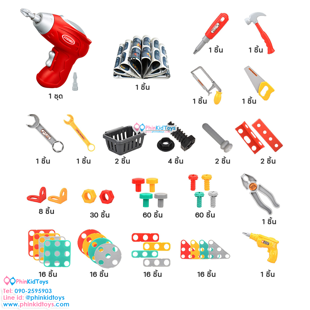 ชุดโต๊ะเครื่องมือช่าง 246 ชิ้น สว่านแบตเตอรี่ เล่นได้ 2 ด้าน ของเล่น DIY