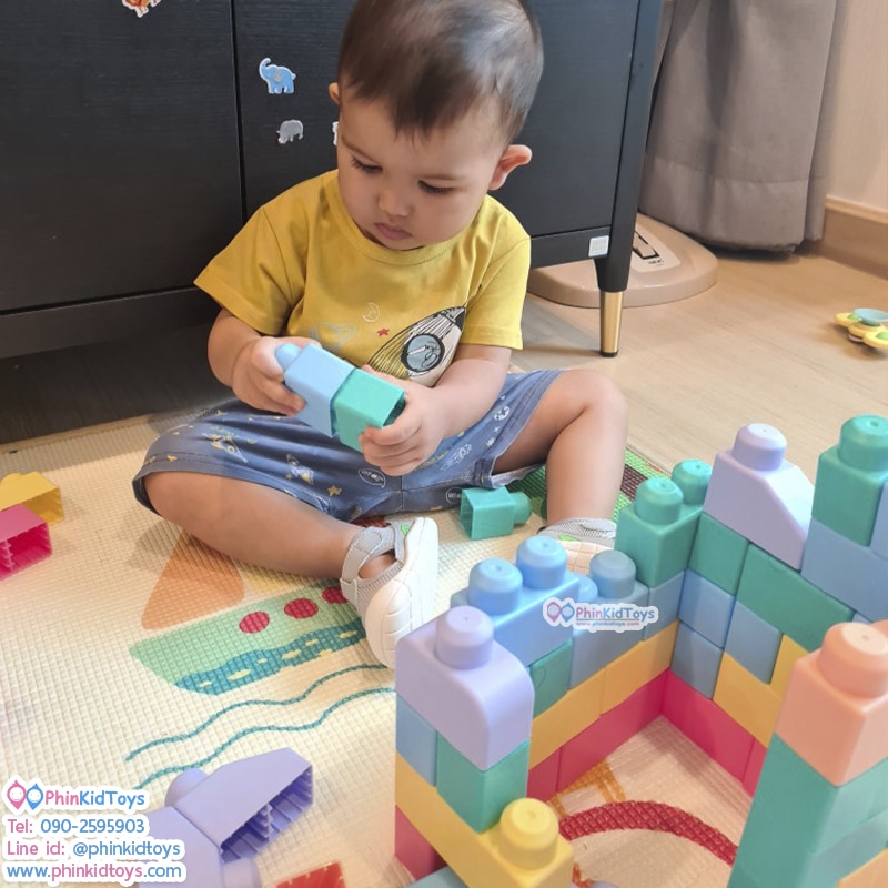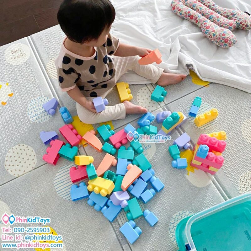 บล็อกนิ่ม บล็อกซิลิโคน รุ่น A โทนสีพาสเทล 54 ชิ้น กล่องล้อลาก สีชมพู