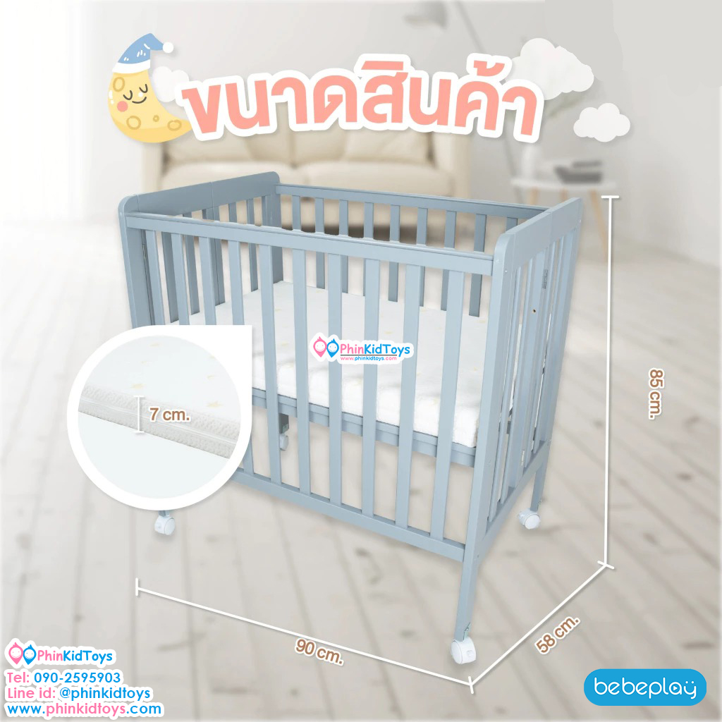 Bebeplay เตียงนอนไม้สำหรับเด็ก รุ่น EDEN แถมฟรี เบาะนอนและมุ้งกันยุง