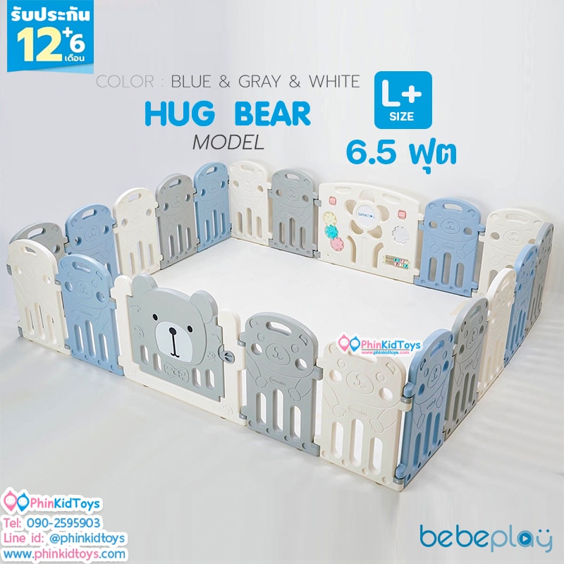 Bebeplay คอกกั้นเด็ก รุ่น Hug Bear Size L+ / 6.5 ฟุต คอกกั้น คอกเด็ก รั้วเด็ก สีฟ้าเทาขาว