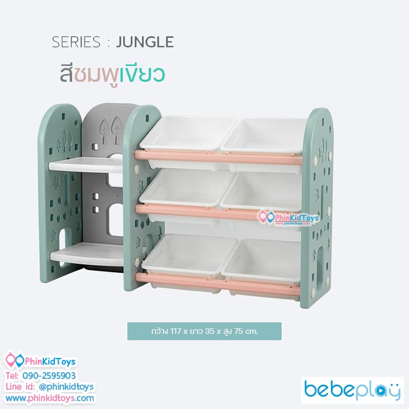 Bebeplay ชั้นวางกล่อง รุ่น Jungle Set 2 สีชมพูเขียว ชั้นวางหนังสือ ชั้นวางของ ชั้นใส่ของ (J2-5)