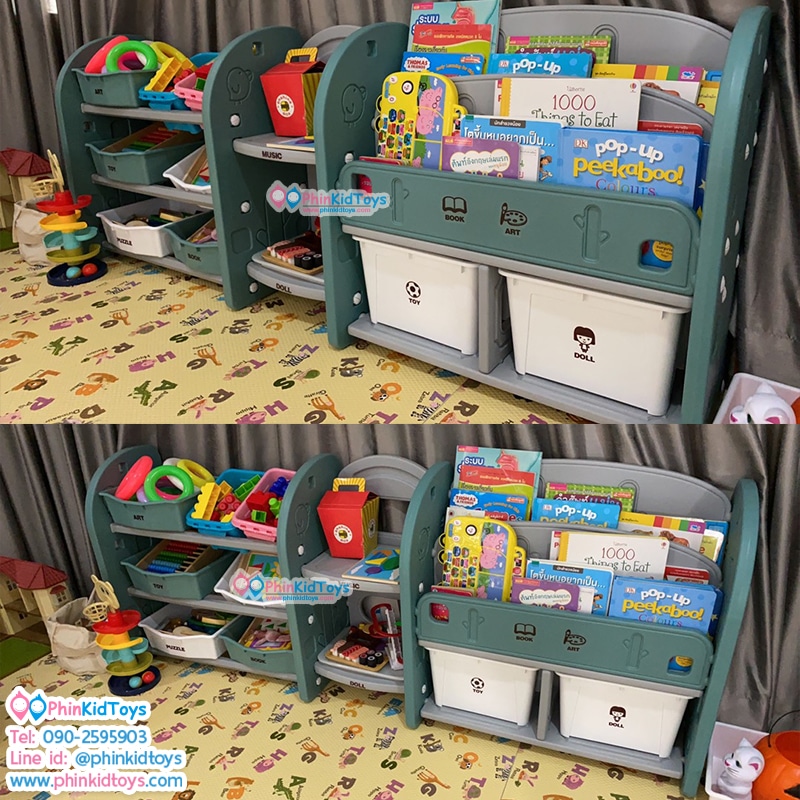 Bebeplay ชั้นวางของแบบ Set 3 ชิ้น รุ่น Catus สีเขียว ชั้นวางหนังสือ ชั้นวางของ ชั้นใส่ของ (C1-2-5)