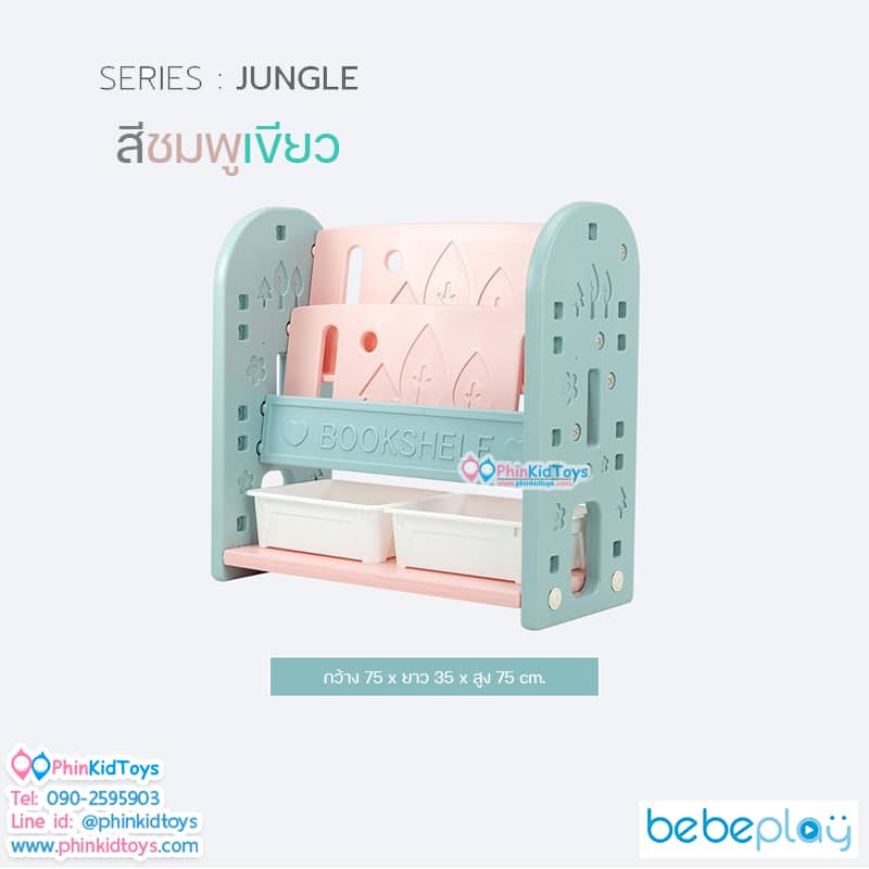 Bebeplay ชั้นวางหนังสือ รุ่น Jungle สีชมพูเขียว ชั้นวางหนังสือ ชั้นวางของ ชั้นใส่ของ (J1)