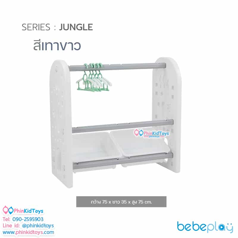 Bebeplay ชั้นแขวนเสื้อ รุ่น Jungle สีเทาขาว ชั้นวางหนังสือ ชั้นวางของ ชั้นใส่ของ (J3)