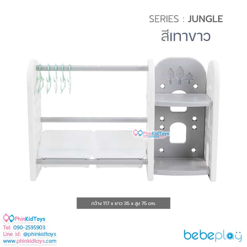 Bebeplay ชั้นแขวนเสื้อ Set2 รุ่น Jungle สีเทาขาว ชั้นวางหนังสือ ชั้นวางของ ชั้นกล่องใส่ของ (J3-5)