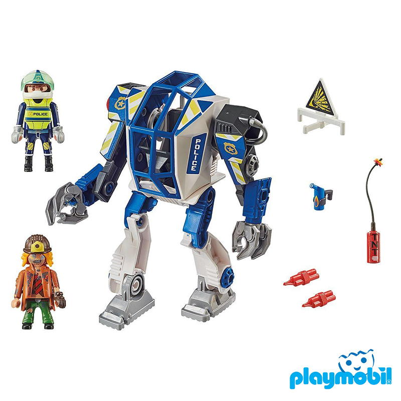 ตำรวจใช้หุ่นยนต์ตำรวจที่ใช้งานได้จริงเพื่อปฏิบัติการพิเศษที่อันตรายโดยเฉพาะ โจรปล้นธนาคารที่ฉ้อโกงพยายามหาทางเข้าไปในธนาคารด้วยวัตถุระเบิด แต่เจ้าหน้าที่ตำรวจปีนเข้าไปในห้องนักบินของหุ่นยนต์อย่างไม่เกรงกลัวและเดินตรงเข้าไปในเขตอันตราย เขานำหุ่นยนต์เข้าหาคนร้ายอย่างชาญฉลาดและนำอุปกรณ์ระเบิดจากมือของเขาด้วยกริปเปอร์อย่างรวดเร็ว จากนั้นปีศาจไฟจะถูกส่งไปยังสถานีตำรวจที่ใกล้ที่สุดโดยเส้นทางที่เร็วที่สุด ในชุดการเล่นประกอบด้วยฟิกเกอร์ PLAYMOBIL สองตัวหุ่นยนต์ตำรวจที่มีขาและแขนที่เคลื่อนย้ายได้อุปกรณ์ระเบิดป้ายเตือนหมวกกันน็อคถุงมือและของแถมอื่น ๆ อีกมากมาย